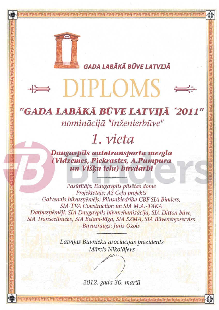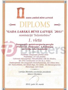 Latvijas Būvniecības asociācijas skate "Gada labākā būve Latvijā 2011" - 1. vieta nominācijā '"Inženierbūve" par Daugavpils autotransporta mezgla būvniecību