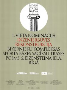 Konkurss "Latvijas Būvniecības gada balva" 2016.gadā - 1.vieta nominācijā "Inženierbūve" Biķernieku kompleksās sporta bāzes sacensību trases posmam.