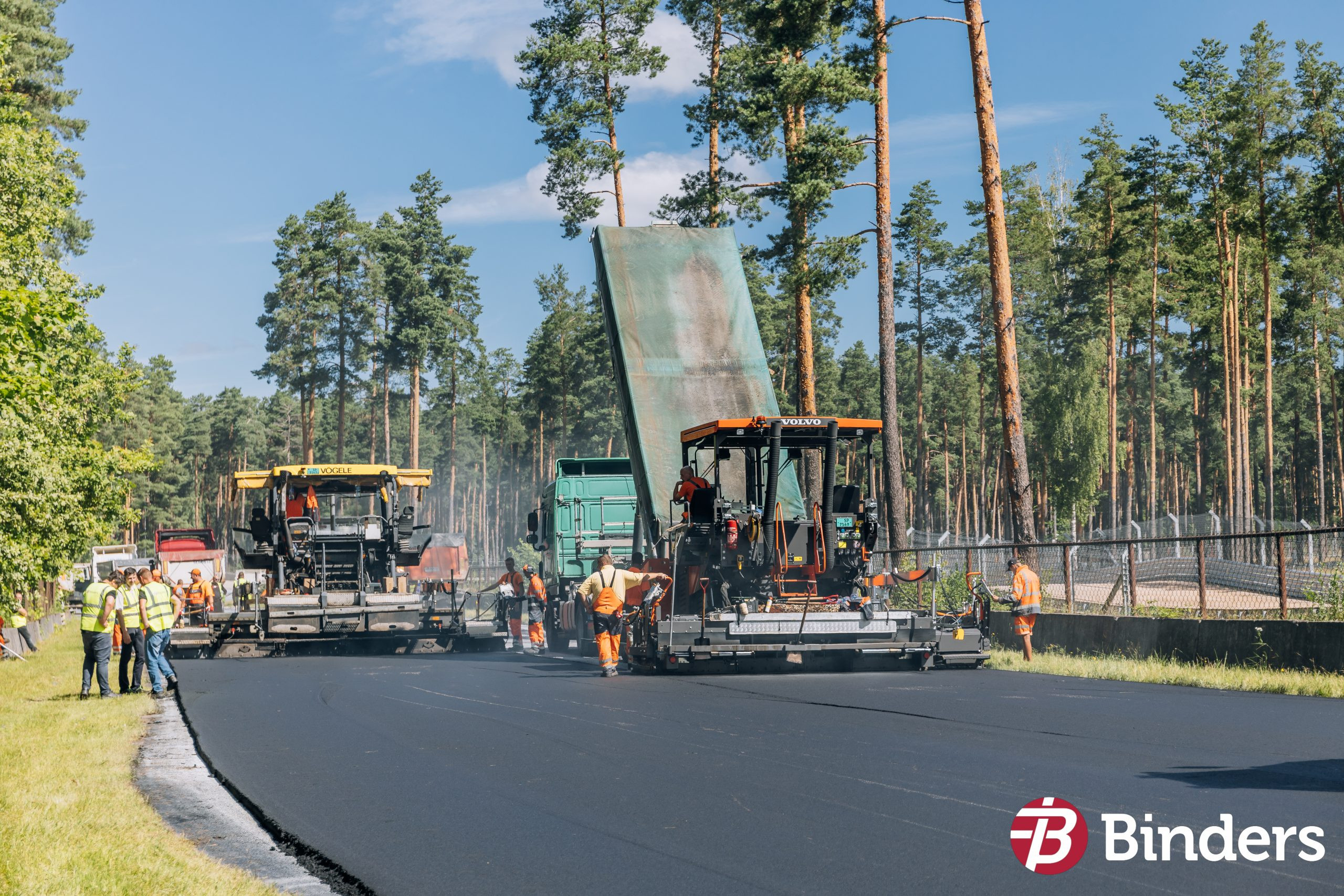 Last year, Binders renewed the surface and safety equipment of the Biķernieki Race Track. In July, a new asphalt concrete surface in the area of 10,000 m2 was laid in the areas intended for the renewal of the track. In accordance with the specific requirements of the race track, the surface must be seamless, so the new surface was laid simultaneously by four asphalt pavers.