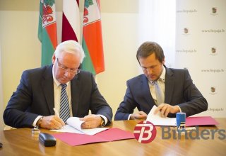 Līguma parakstīšana par Liepājas lidostas rekonstrukciju ( Liepājas pilsētas domes foto)