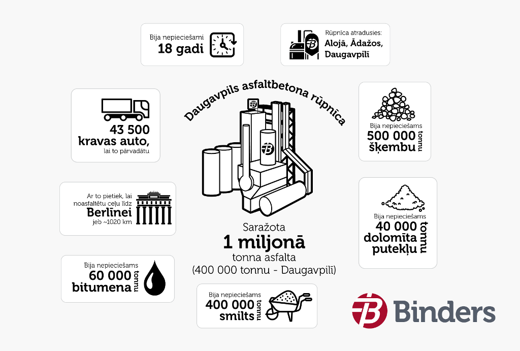 21. 2018.gada būvniecības sezonā abas uzņēmuma asfaltbetona ražotnes Vangažos un Daugavpilī sasniedza saražotās produkcijas miljonās tonnas robežu. Vangažos šis apjoms tika sasniegts 11 gadu laikā, šobrīd Daugavpilī dislocētā ražotne – 18 gados.