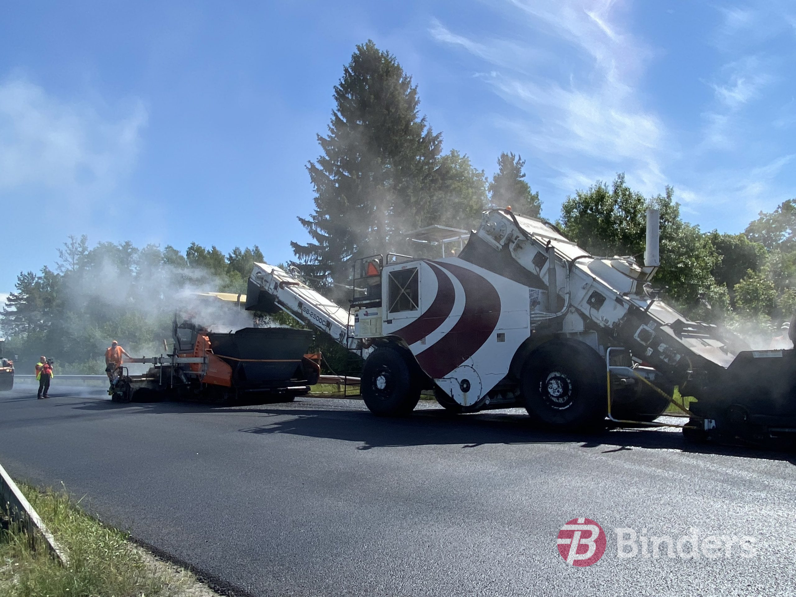 15.06.2021Seguma atjaunošanas projekts paredz asfaltbetona seguma izlīdzinošo frēzēšanu un jaunā seguma ieklāšanu. Šobrīd remontdarbu zonā notiek gan vecā seguma frēzēšana, gan jaunā asfalta ieklāšana. Paredzēts, ka jūnijā tiks paveikts šo darbu lielākais apjoms. Pēc jaunā seguma ieklāšanas remontam paredzētajā posmā tiks papildinātas ceļa nomales, izbūvētas akustiskās ribjoslas un uzklāts horizontālais marķējums.
