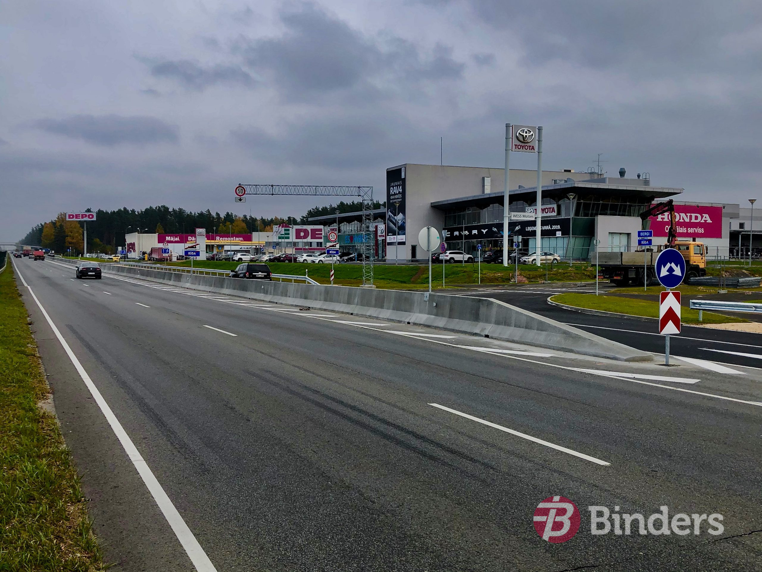 Tā izbūvēta ar vienlaidus betonēšanu vienas nakts laikā. Ierastāk un biežāk betona aizsargbarjeras būvē ( saliek) no rūpnieciski ražotiem betona blokiem, kas ir laikietilpīgāks process. “Binders” speciālisti šoreiz izvēlējās betonēšanas procesu, un astoņās stundās tapa atdalošā aizsargbarjera, kuras kvalitatīvie un funkcionālie parametri atbilst projektā noteiktajām prasībām.
