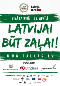 Šogad Lielā Talka norisināsies 23.aprīlī. Par tās vadmotīvu izvēlēts sauklis “Latvijai BŪT zaļai!”, tādējādi iedzīvinot Latvijas mērķi virzīties uz pasaulē zaļākās valsts statusu.