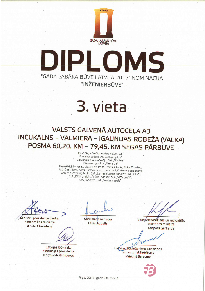 “Binders” objekts – viena no labākajām 2017. gada ceļu būvēm Latvijā