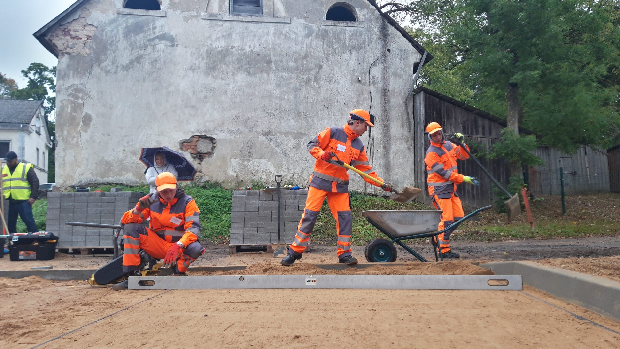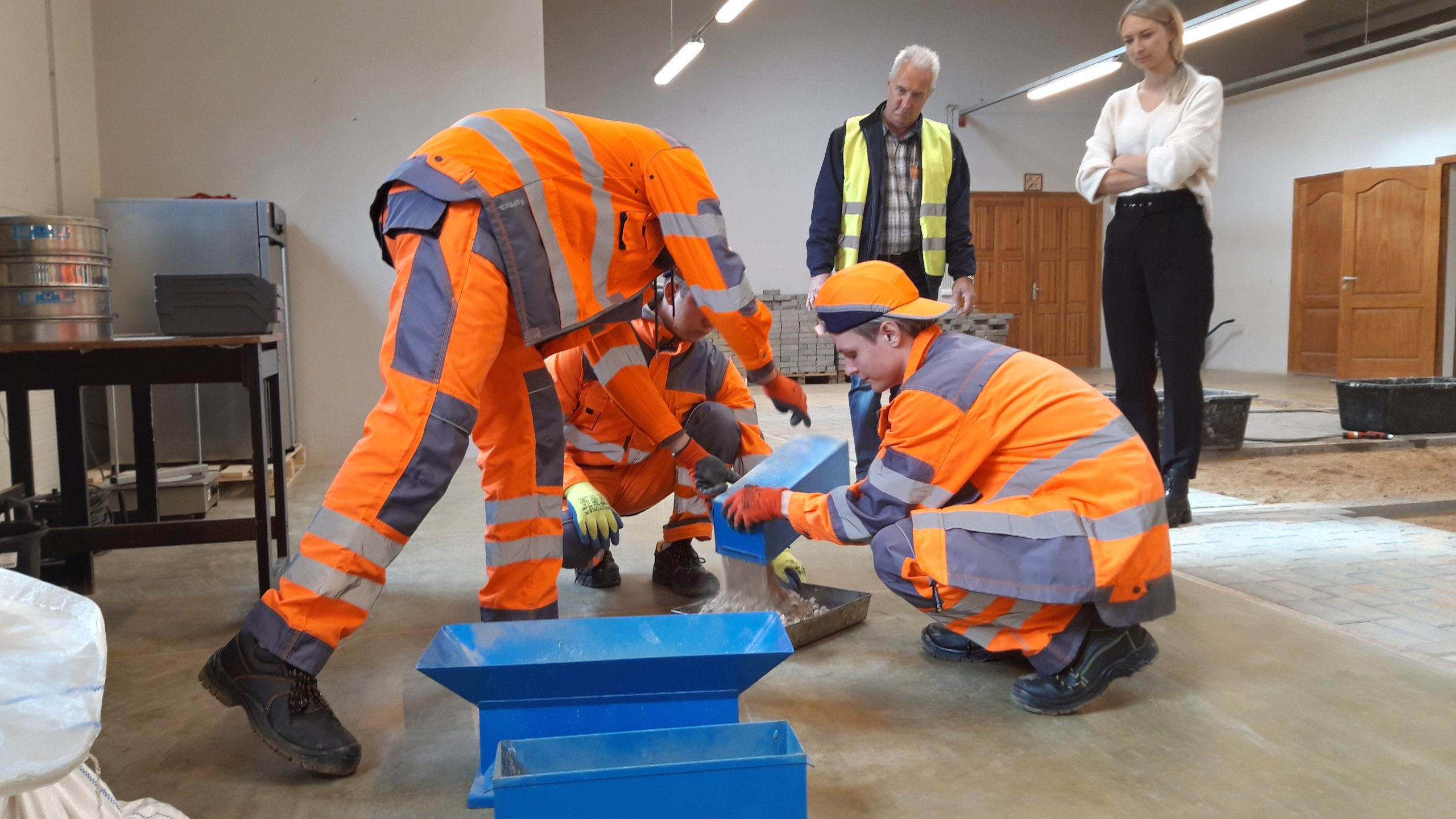 Divas dienas jaunieši demonstrēja savas prasmes bruģa segumu ieklāšanā uz iepriekš izlīdzināta šķembu pamata, laboratoriskā pārbaudē noteica grunts paraugu granulometrisko sastāvu un bitumena konsistences rādītājus ar adatas penetrācijas metodi, bet šķembu izturību noteica ar ceļu būvmateriālu testēšanā izmantoto metodi, ko sauc par Losandželosas koeficienta aprēķinu.