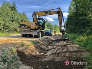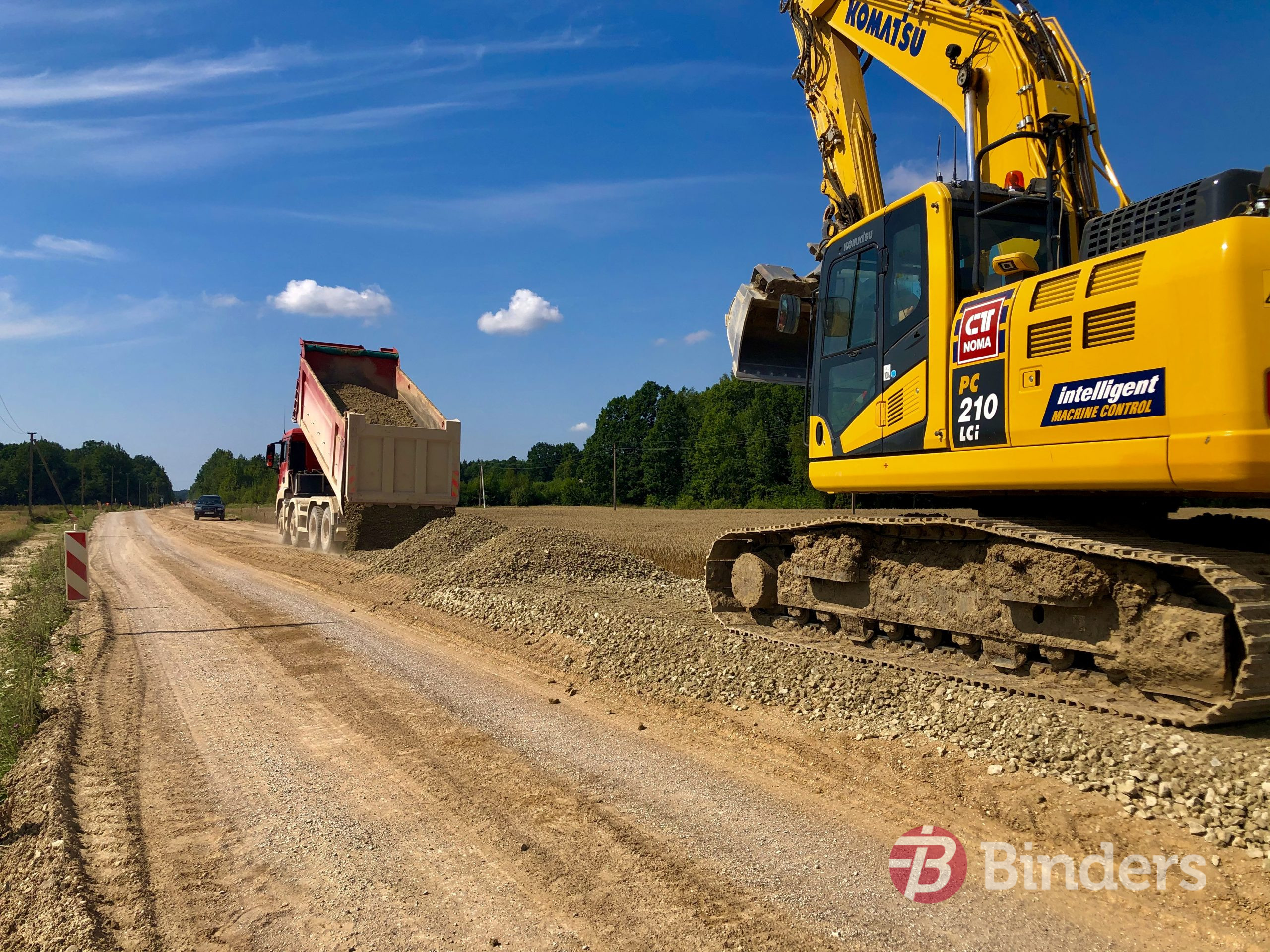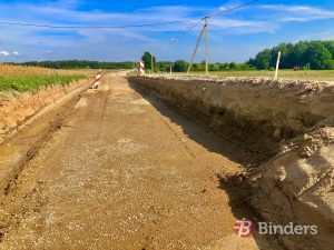 “Šobrīd lielākajā daļā objekta veicam ierakuma un uzbēruma izbūvi, kā arī grāvju rakšanu, kam seko ceļa konstrukcijas izbūve. Darbu apjoms ir liels, tāpēc strādājam intensīvi, lai jau šogad pagūtu noasfaltēt lielāko rekonstrukcijai paredzētā posma daļu. Asfalta ieklāšanu plānojam veikt oktobrī,” stāsta SIA “Binders” projekta vadītājs Aigars Asarītis.