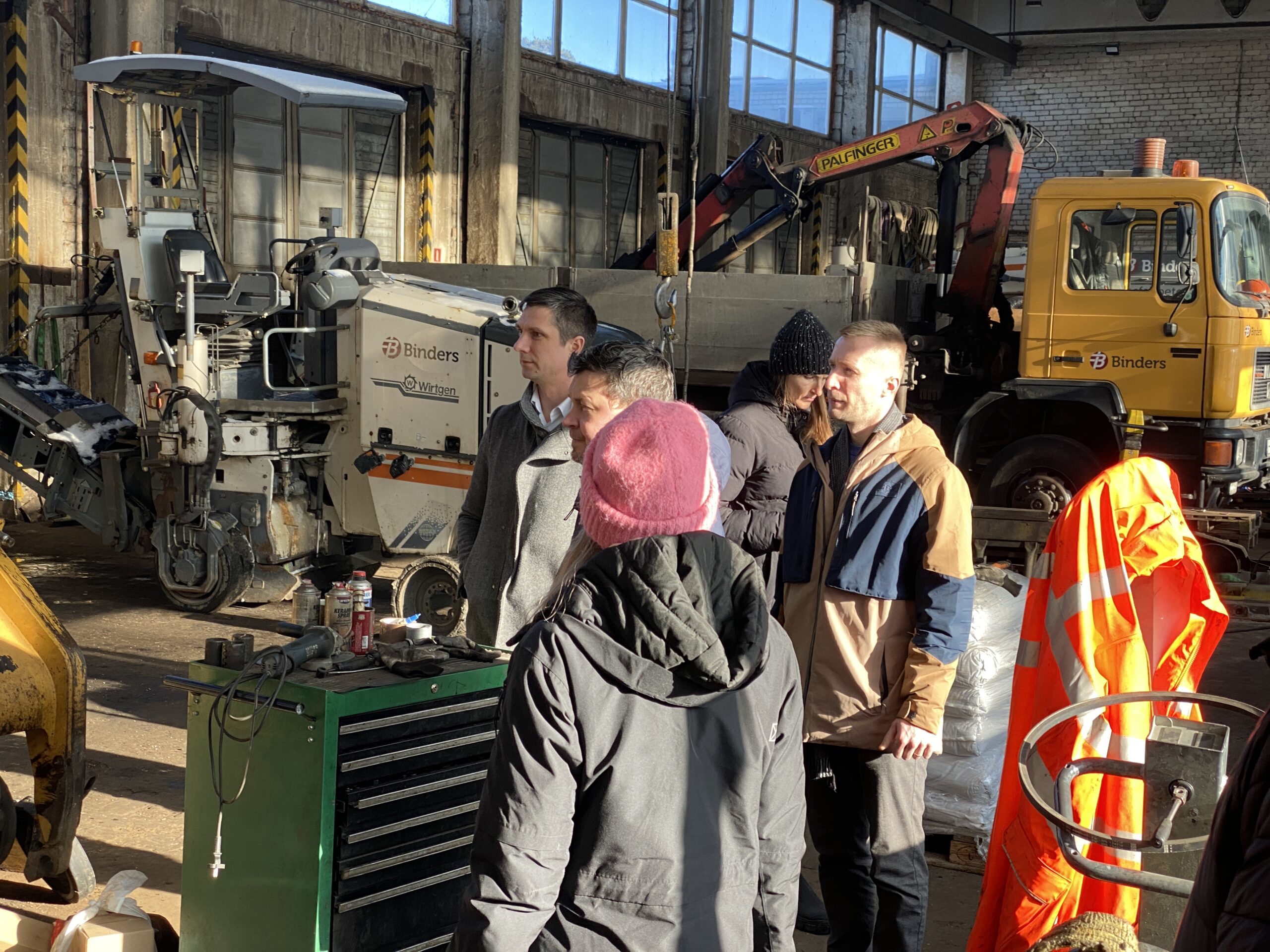 Smiltenes tehnikuma pārstāvji tikās ar CBF SIA “Binders” vadību, iepazinās ar būvdarbu gaitu Dienvidu tilta 4. kārtas būvobjektā, raudzīja darbu organizāciju uzņēmuma Mehanizācijas departamentā Saulkrastos, apskatīja asfaltbetona ražotni Vangažos, iepazinās ar ceļu būvmateriālu testēšanas laboratorijas ikdienu.