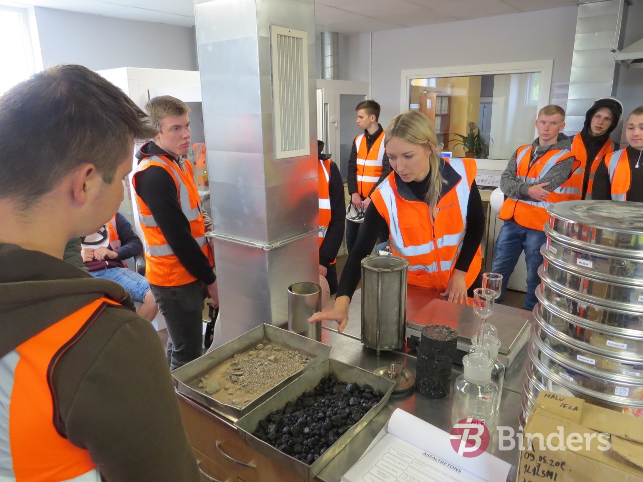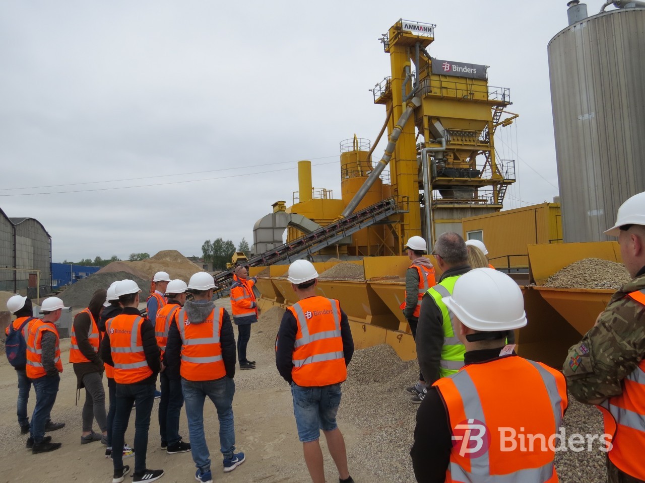 Daugavpils tehnikuma audzēkņiem bija iespēja uzzināt un redzēt,  kā un kādam mērķim ģeodēzijas procesā ceļinieki izmanto dronus. Daugavpils Asfaltbetona rūpnīcā jaunieši apskatīja ražošanas procesa galvenos etapus un tehnoloģijas, kā arī redzēja, cik skrupulozi un ar kādām metodēm būvnieki savā izejmateriālu testēšanas laboratorijā pārbauda gan asfaltbetona ražošanas materiālus, gan jau ieklātā seguma kvalitatīvās īpašības. Audzēkņiem bija iespēja skatīt, kā notiek asfaltēšanas process šobrīd vienā no apjomīgākajiem būvobjektiem Daugavpilī – Smiltenes ielas divlīmeņu pārvada un pievadu būvniecības procesa ietvaros. Ar ko atšķiras darbu organizācija, izpilde un izmantotās tehnoloģijas, jaunieši varēja vērot Daugavpils apvedceļa Kalkūni-Tilti posmā, kur “Binders” uzsācis segas pastiprināšanu.