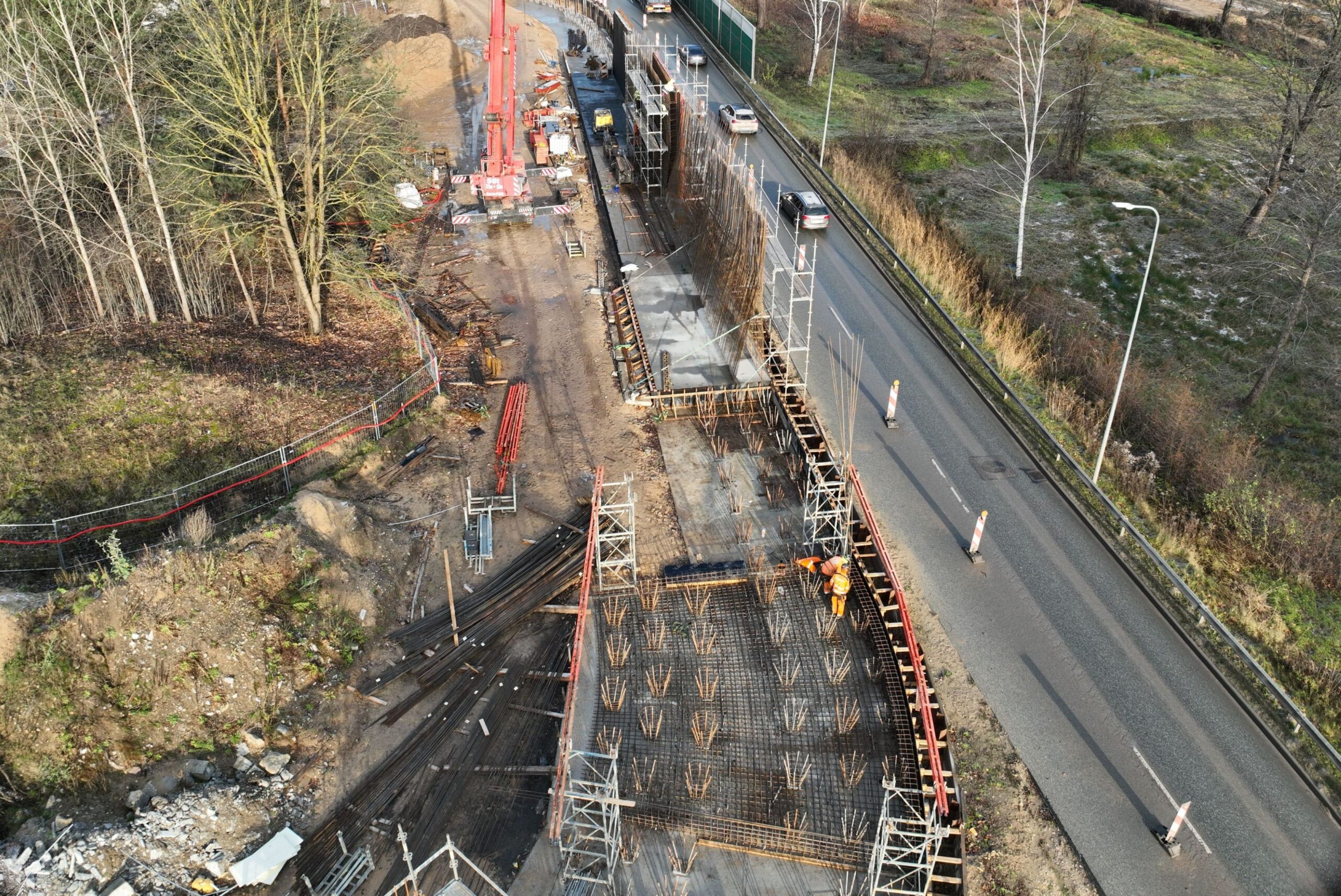 Projekta pirmajā kārtā, posmā no Valdeķu ielas līdz Ziepniekkalna ielai, līdz 2025. gada beigām plānots paveikt aptuveni 50% no kopējā darbu apjoma. Šobrīd objektā turpinās satiksmes pārvada būvniecība pār Mālu ielu – pārvada labajā pusē veic laiduma betonēšanas darbus. Savukārt Ziepniekkalna ielas satiksmes pārvadam uzbetonēti pieci laidumi, kā arī uzsākta nākamo laidumu izbūve un turpinās rampu būvniecība.