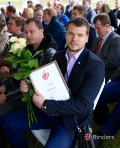 Attēlā pa labi: CBF SIA ‘Binders” Būvniecības departamenta direktors Ingus Pētersons pēc balvas saņemšanas