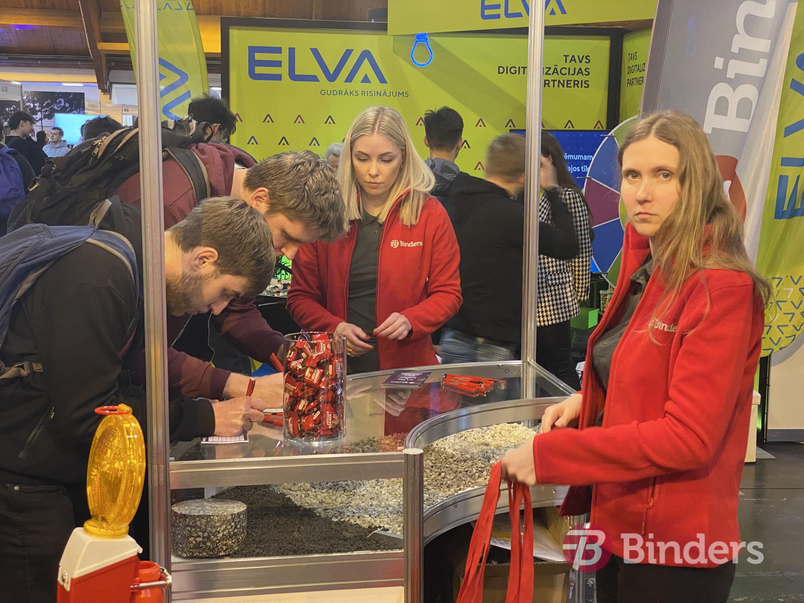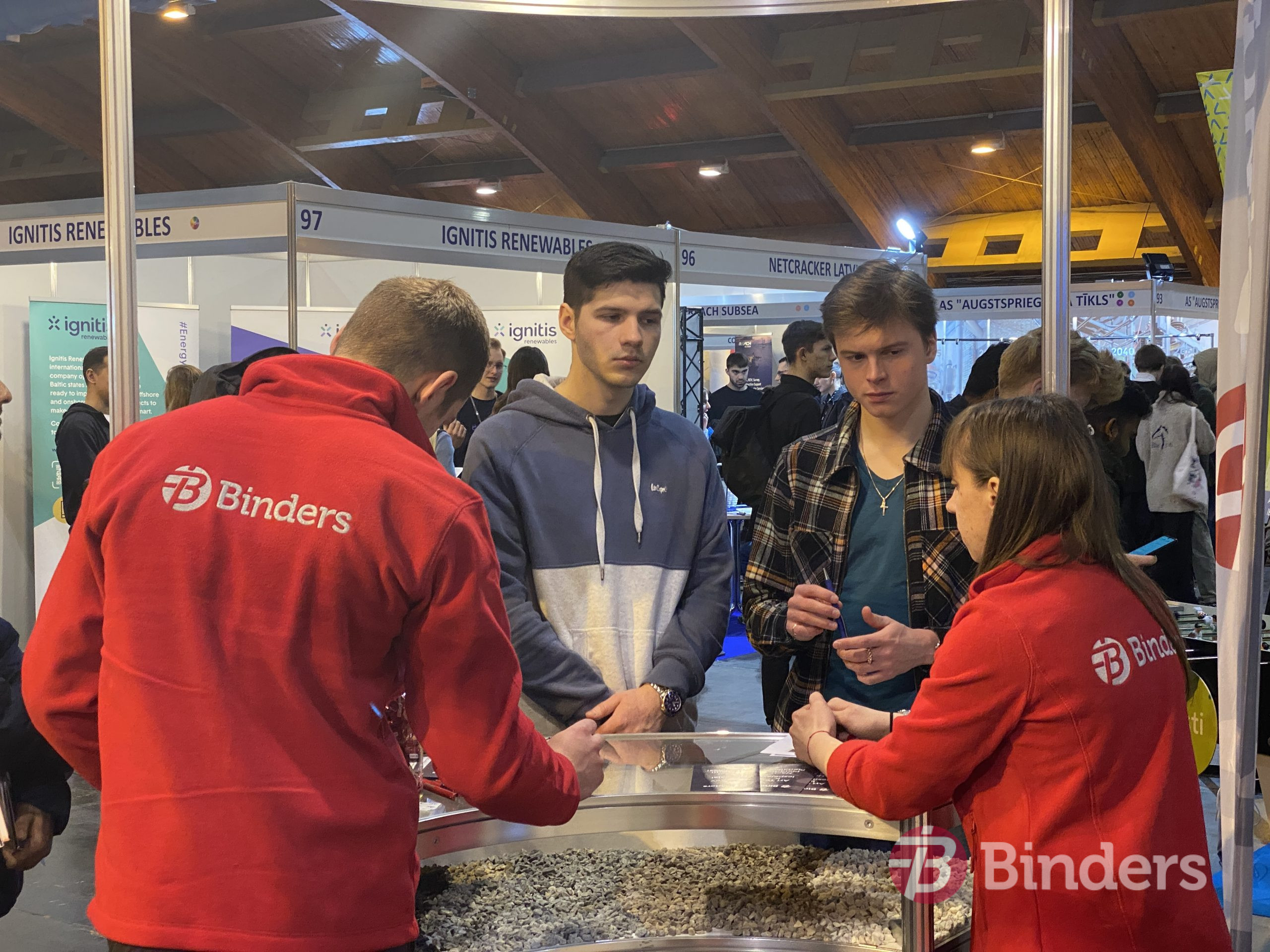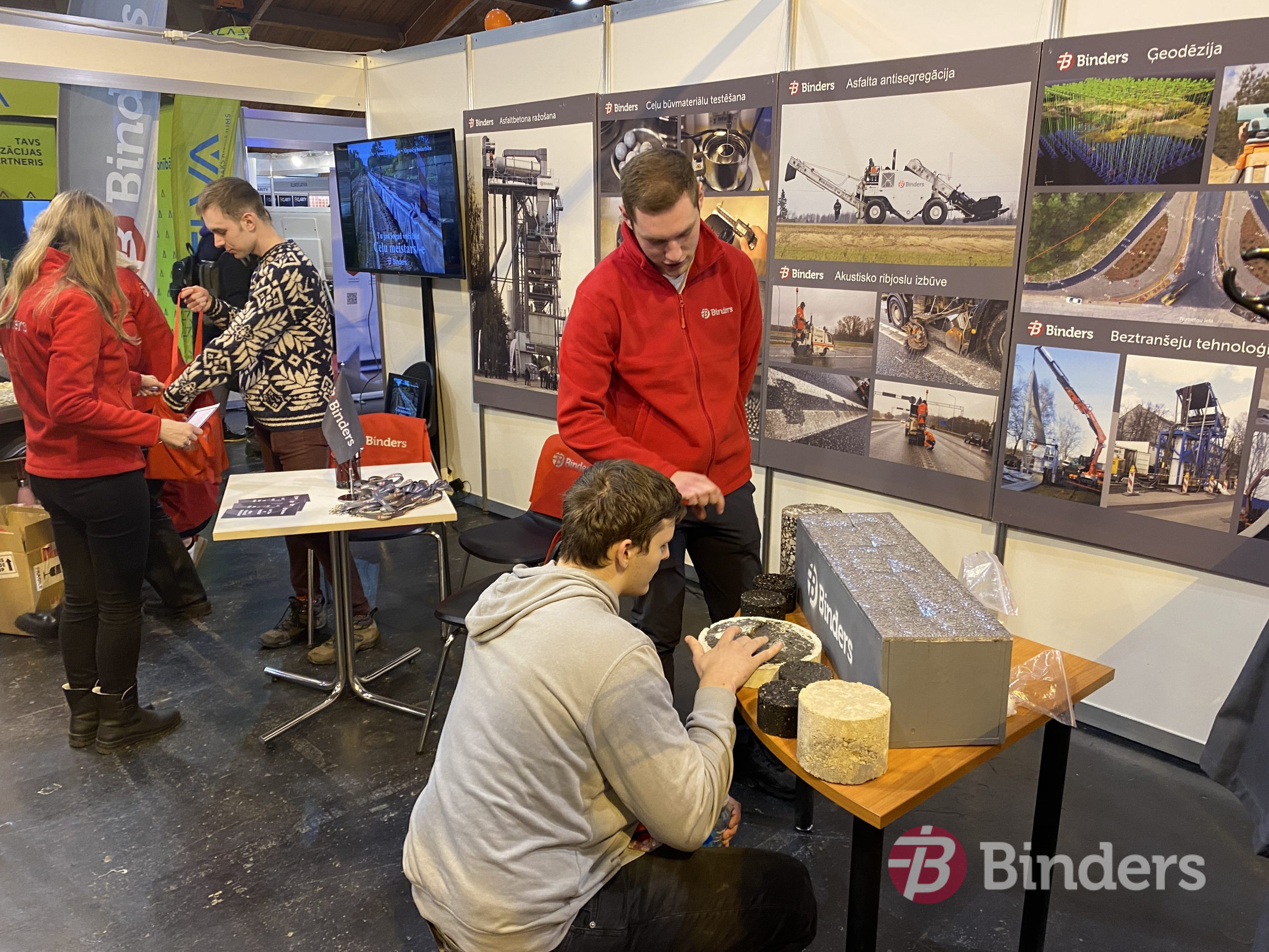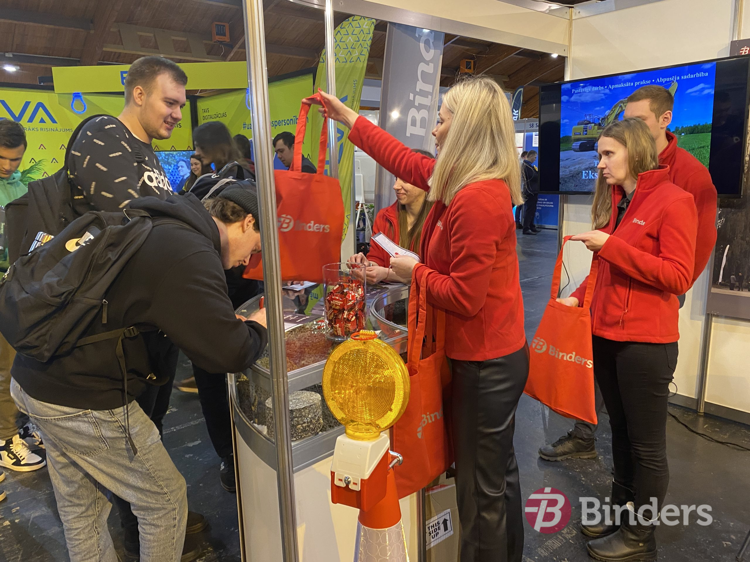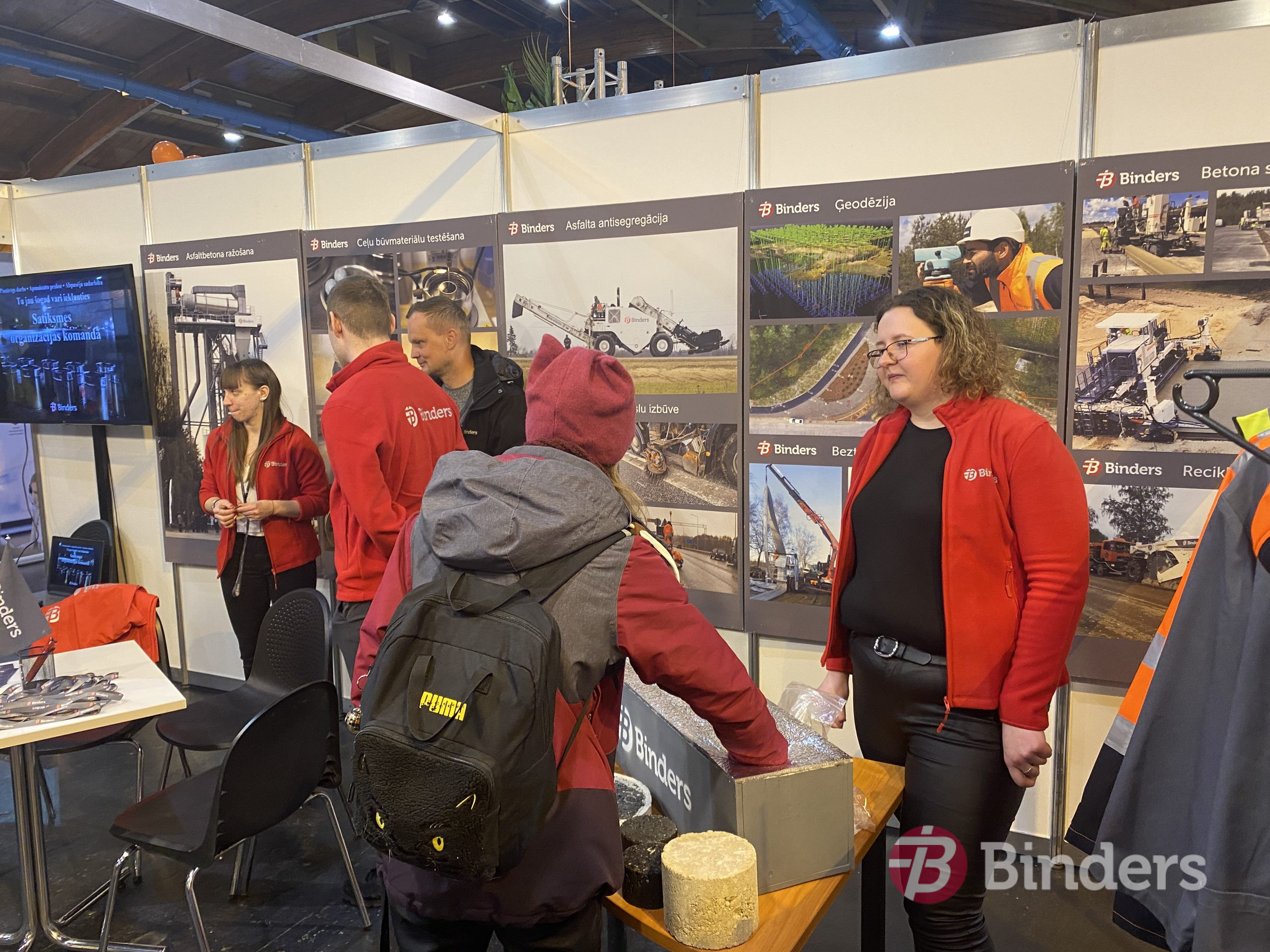 Īpašs prieks par jauniešiem, kuri iegriezās uzņēmuma stendā, lai interesētos  par iespējām šovasar strādāt ceļu būvniecības objektos. Ceļu būves firmai SIA “Binders” ir dažādi piedāvājumi – gan apmaksātas prakses vietas, gan darbs būvniecības sezonas laikā, gan pastāvīgs darbs, gan citi abpusēji izdevīgi risinājumi.