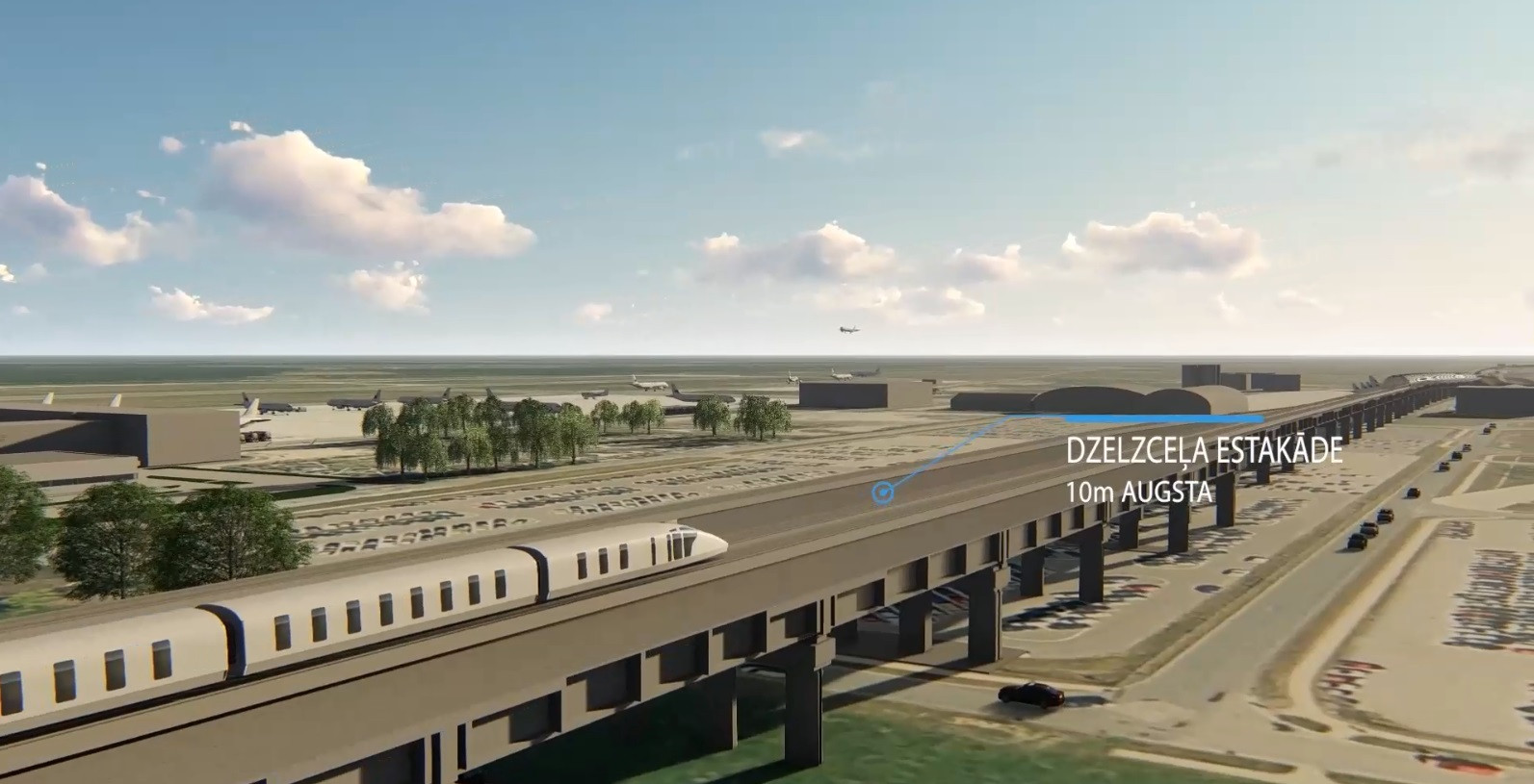 Pēc tam sekos estakādes uz Rīgu un Jaunmārupi izbūve. Lai dzelzceļš aizņemtu mazāk vietas, “Rail Baltica” dzelzceļš un stacija lidostā „Rīga” tiks izvietota uz dzelzceļa estakādes, kuras augstums būs apmēram 10 metri. Šāda estakāde ir unikāla, jo līdz šim Latvijā nekas līdzīgs nav realizēts. Tiks veidots uzbērums un 113 m garš dzelzceļa pārvads pār K. Ulmaņa gatvi.