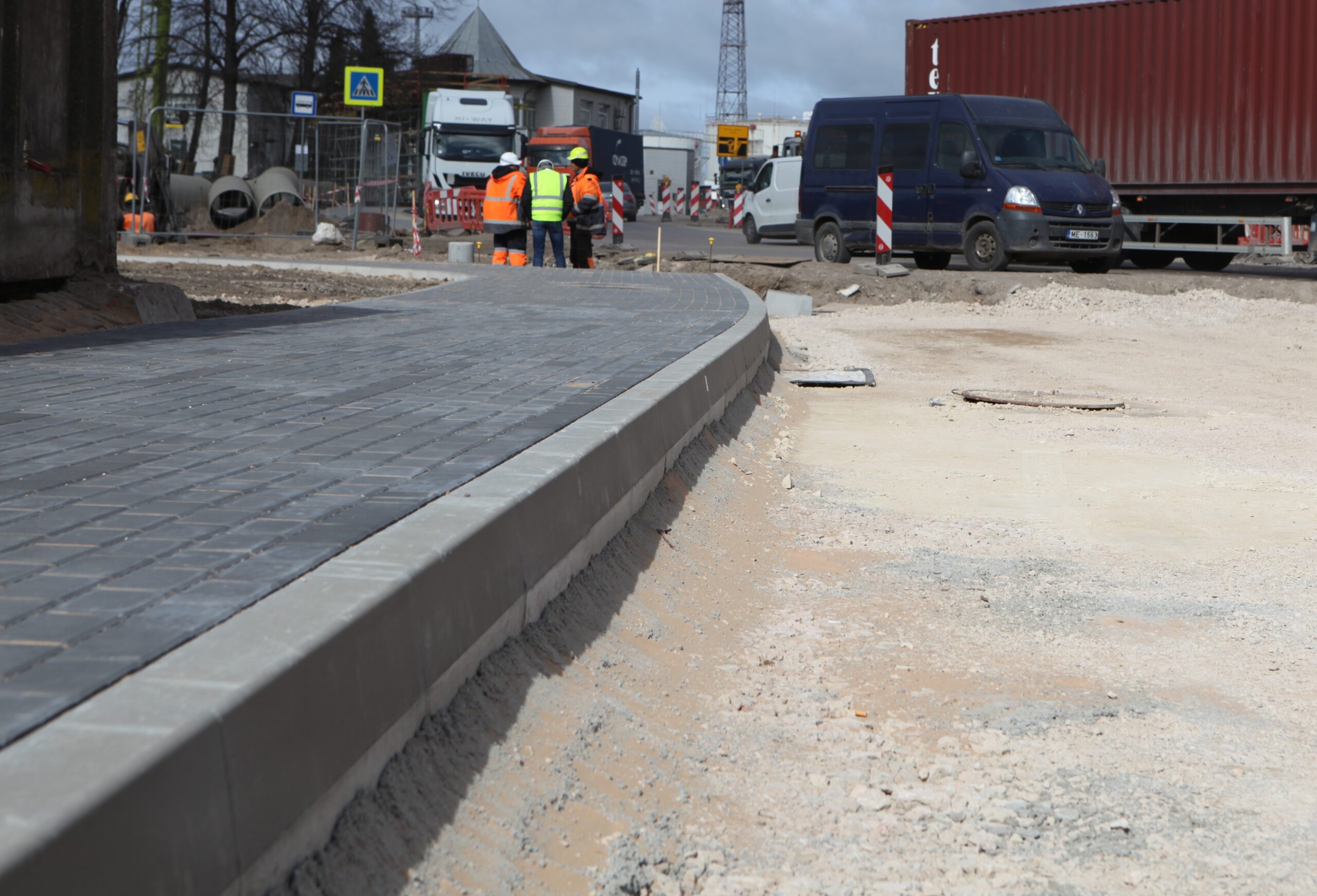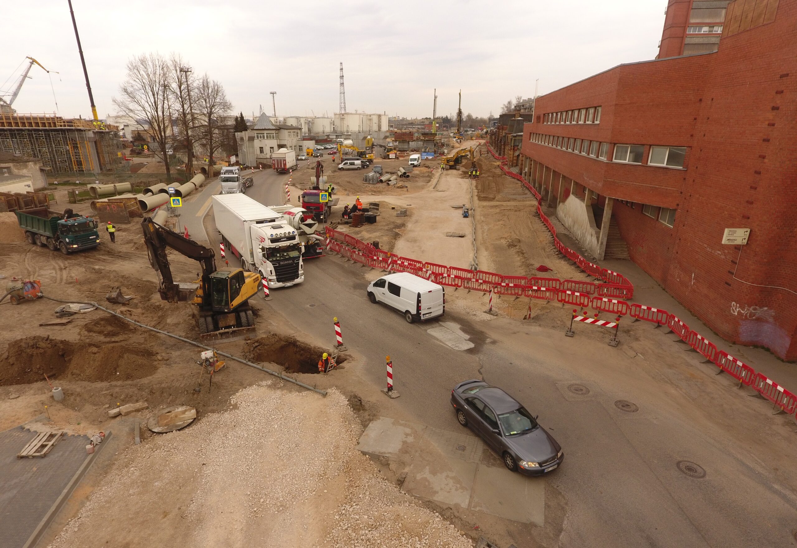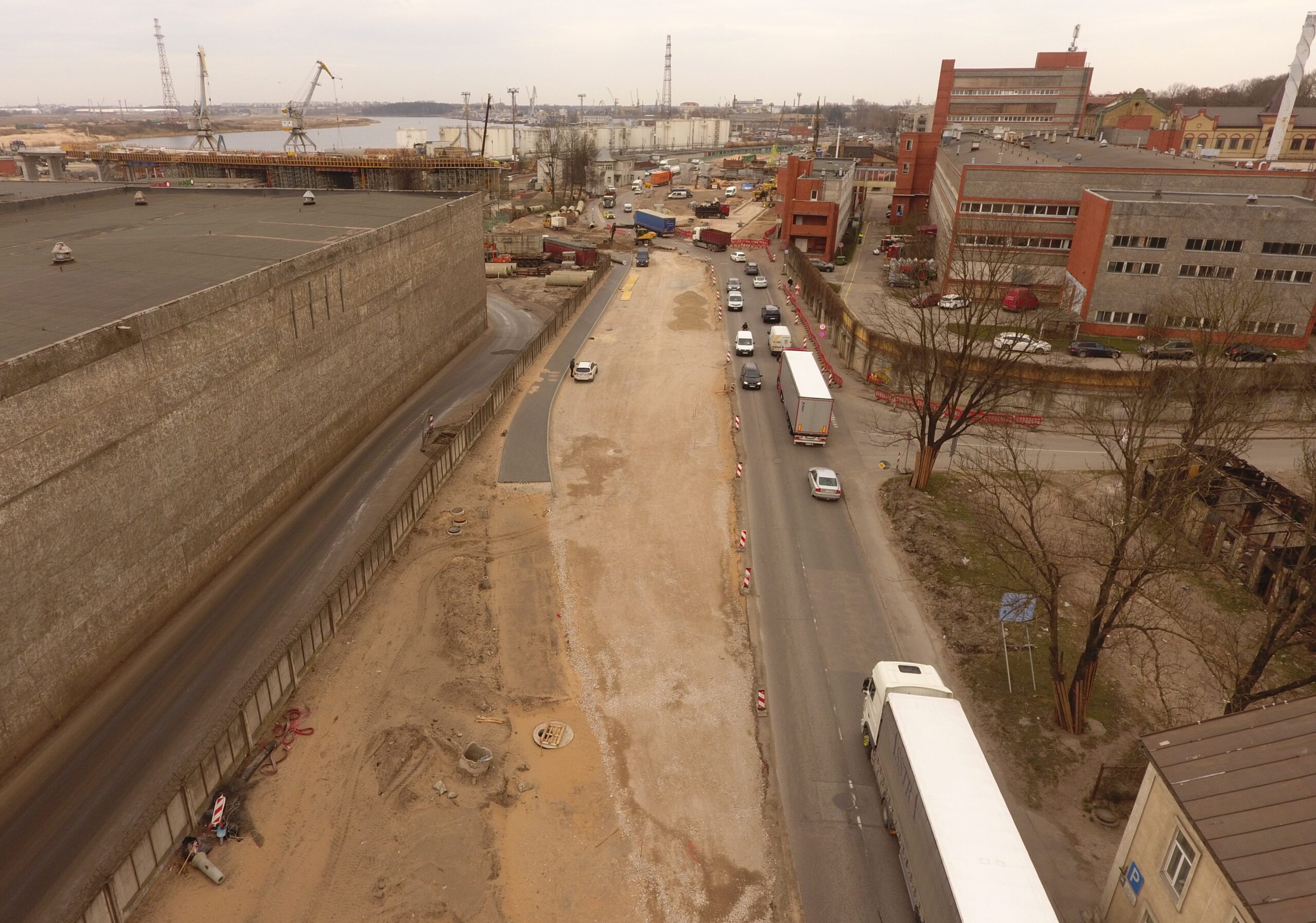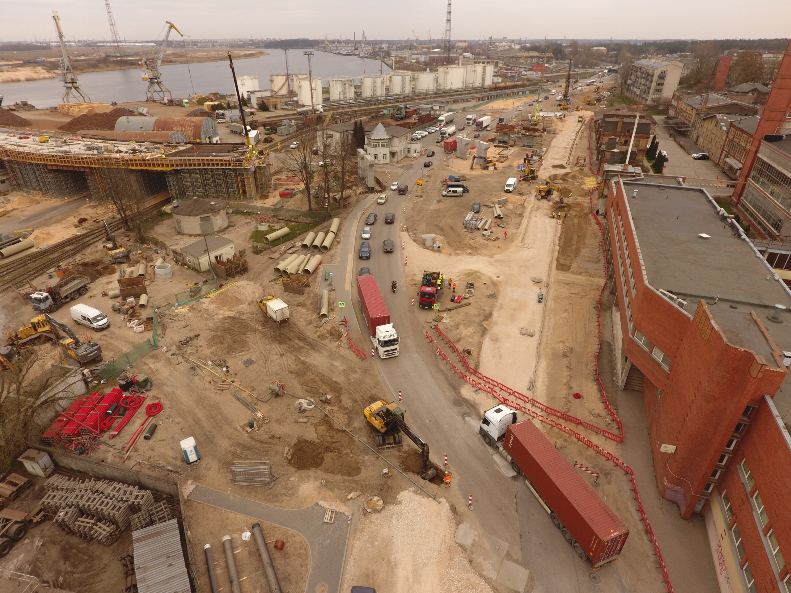 Liela apjoma būvdarbi notiek arī pārvadam piegulošajās teritorijās, jo projekts paredz gājēju ietvju, riteņbraucēju un ceļu tīklu izbūvi.
