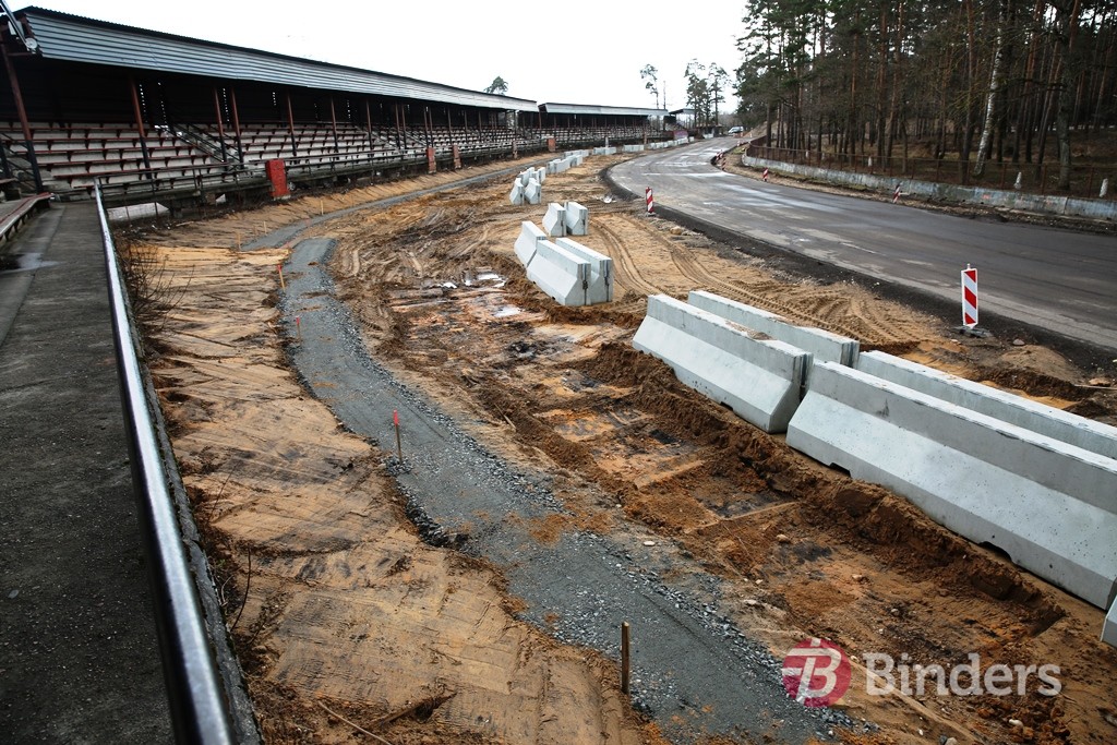 Turpinās Biķernieku kompleksās sporta bāzes sacīkšu trases posma rekonstrukcija, kā to paredz ceļu būves uzņēmuma CBF SIA „Binders” līgumsaistības ar rekonstrukcijas pasūtītāju – VAS „Ceļu satiksmes drošības direkcija”. Kopš rekonstrukcijas darbu sākšanas gada sākumā, ir demontētas atjaunošanai paredzētās trases drošības konstrukcijas, nofrēzēts vecais asfaltbetons, uzsākta trases betona apmaļu pamatu izbūve un gājēju tuneļa rekonstrukcija.