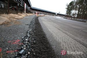 Trasē tiks ieklāts asfalts ar polimērmodificēto bitumenu. Lai garantētu teicamu saķeri un ideālu līdzenumu, asfaltam jābūt ar automobiļu sacīkšu trasei nepieciešamām specifiskām īpašībām un ieklātam bez garenšuvēm. Uzņēmumam „Binders” ir pieredze šādu prasību īstenošanā, jo līdzīgi specifiski kvalitātes noteikumi tika īstenoti Lielvārdes militārā lidlauka skrejceļu asfaltēšanas procesā.