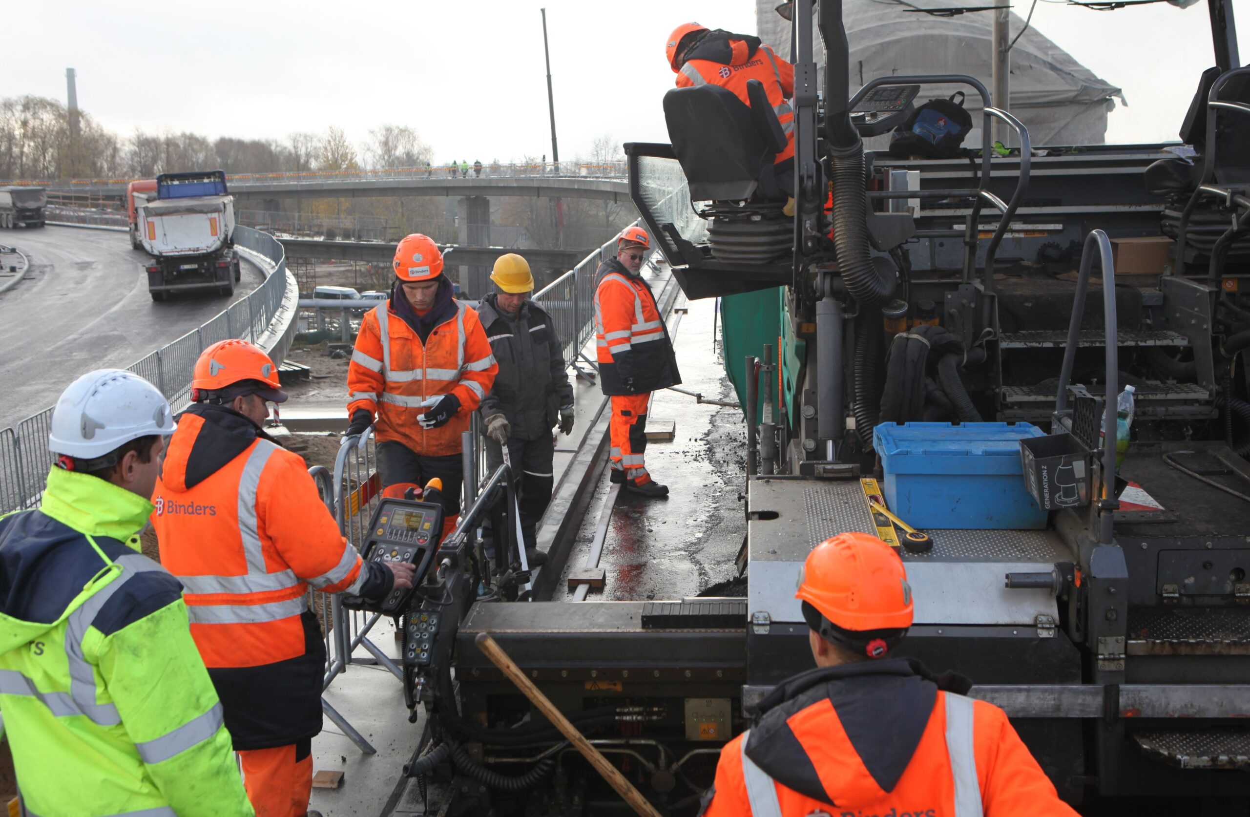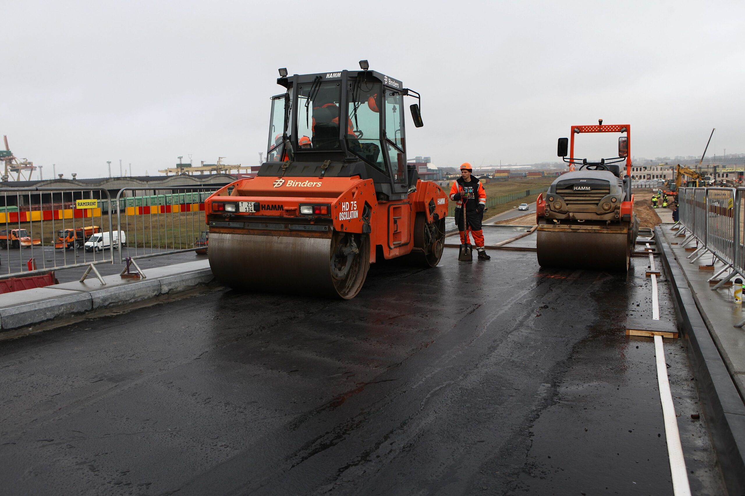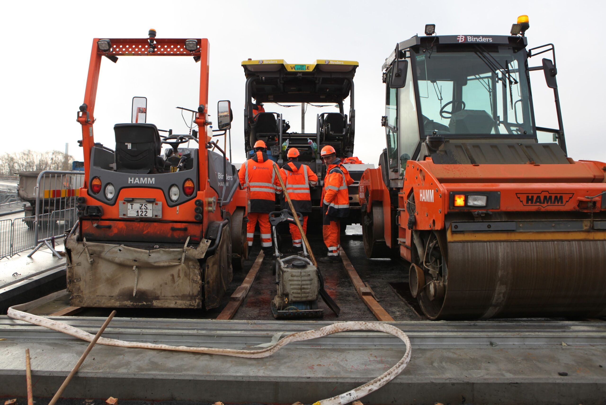 Asfaltēšanas darbus veic ceļu būves firma SIA Binders, kas pilnsabiedrības RK Link sastāvā īsteno Rīgas domes pasūtījumu – infrastruktūras projekta būvniecību Sarkandaugavā. Pilnsabiedŗibas partneri: SIA Hanza Construction Group un SIA TILTS.
