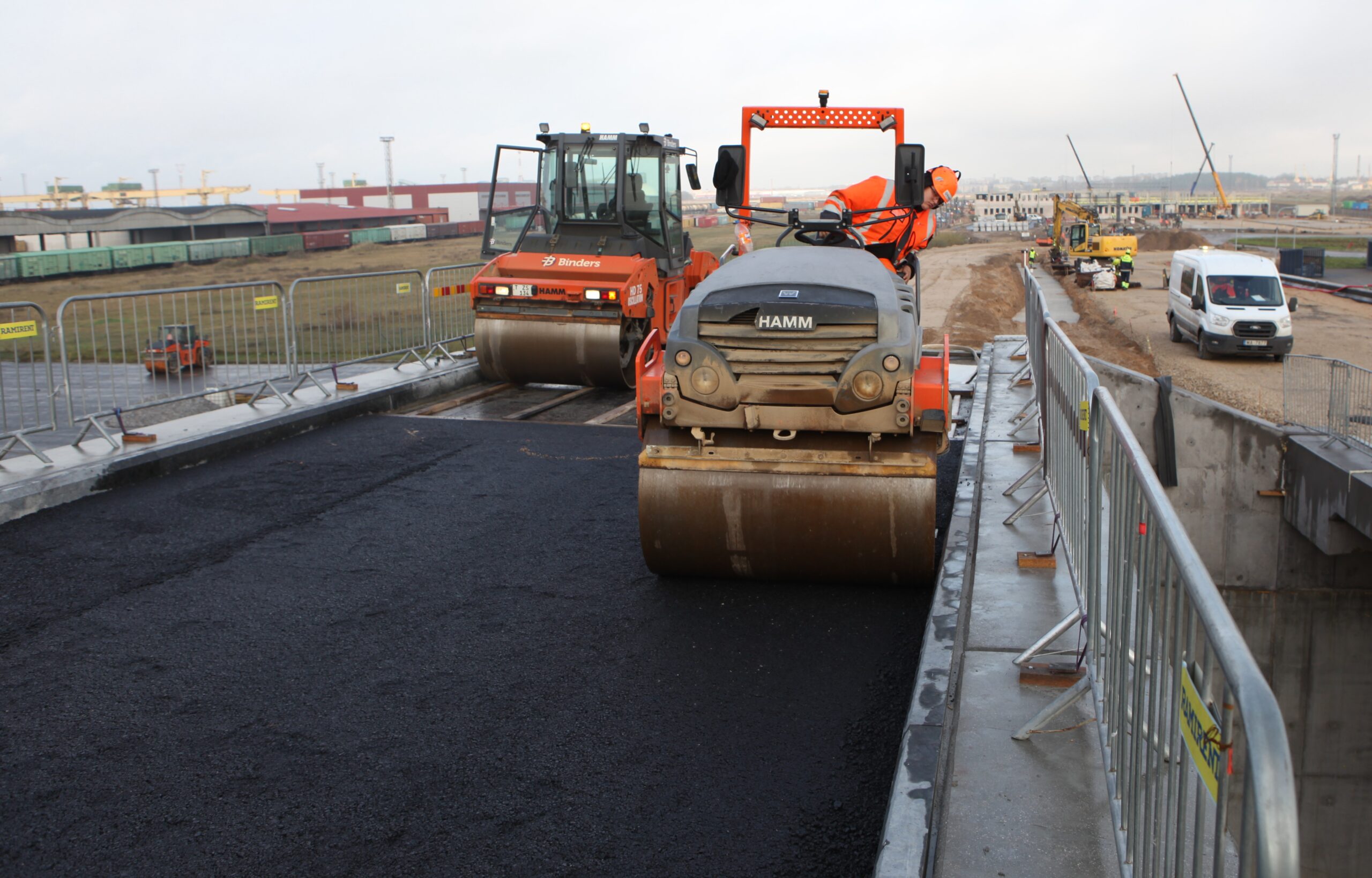 Savukārt novembrī inženierbūves atsevišķos posmos uzsākta asfalta seguma ieklāšana, kas iezīmē faktu, ka projekta īstenošanā sasniegts jauns progress.