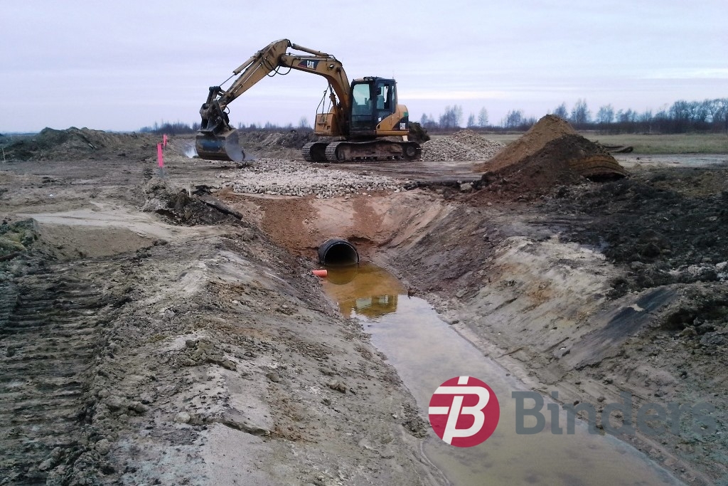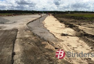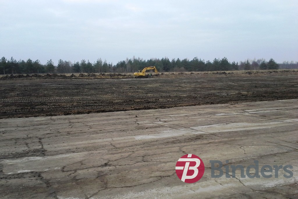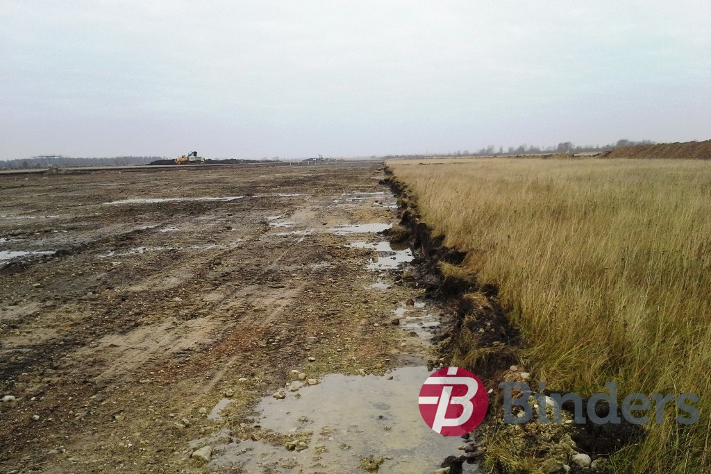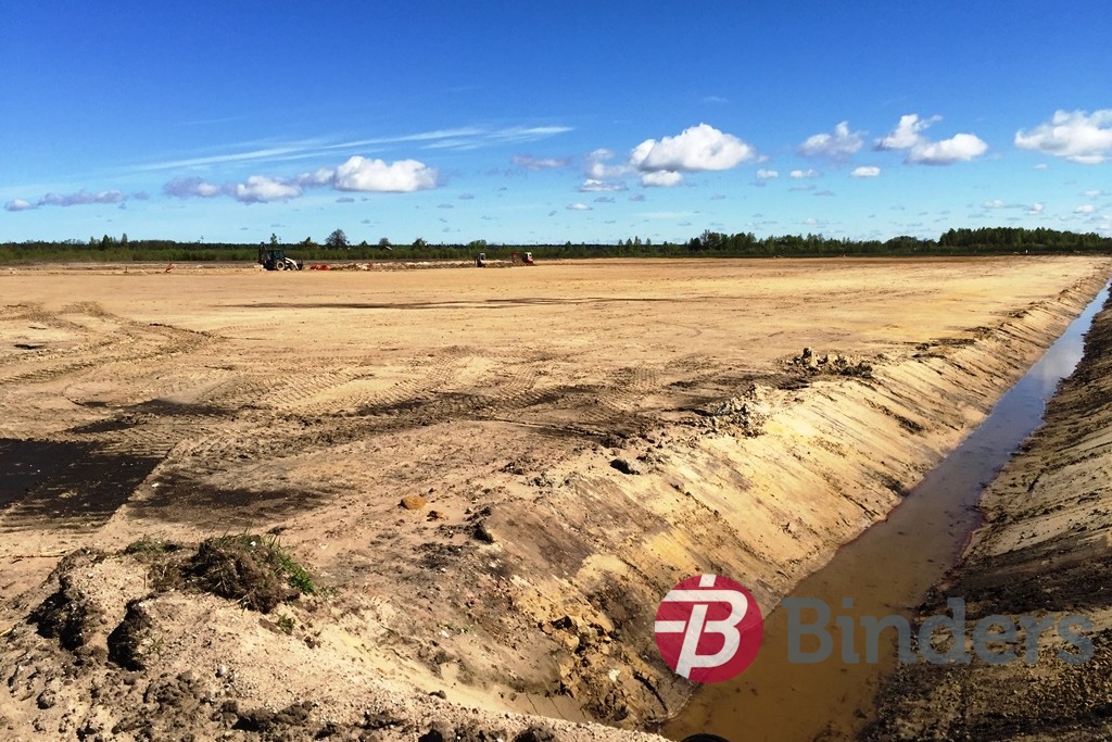 Grunts darbi lidjoslas zonā – apmēram 30 ha platībā – noņemta augu zeme, izbūvēts uzbērums un platība apzaļumota. Apjomīgi meliorācijas darbi , ierīkota apmēram 1,5 km gara drenāžas sistēma.
