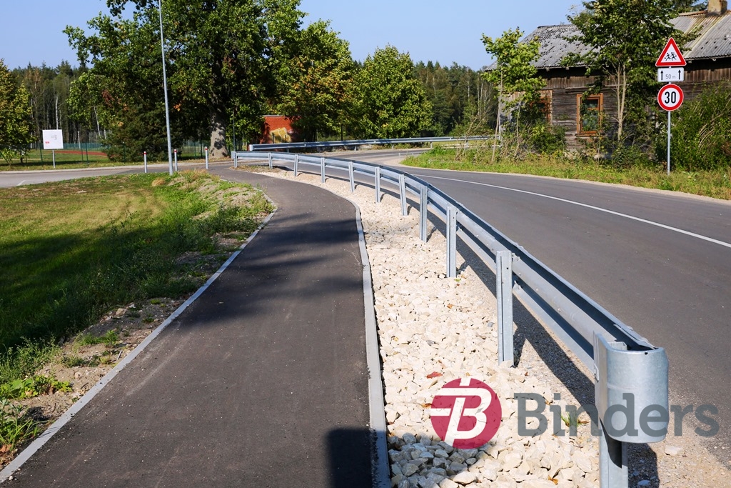 Īstenots interesants drenāžas kanāla risinājums, kas atrodas starp gājēju ietvi un ceļa braucamo daļu. Atbilstoši projektam te veidojas kritumi, lai novadītu ūdeni uz starpjoslu starp ietvi un brauktuvi, kurā ieklāts filtrējošs ģeotekstils un grants maisījums, kas akumulē ūdeni un novada to tālāk gruntī.