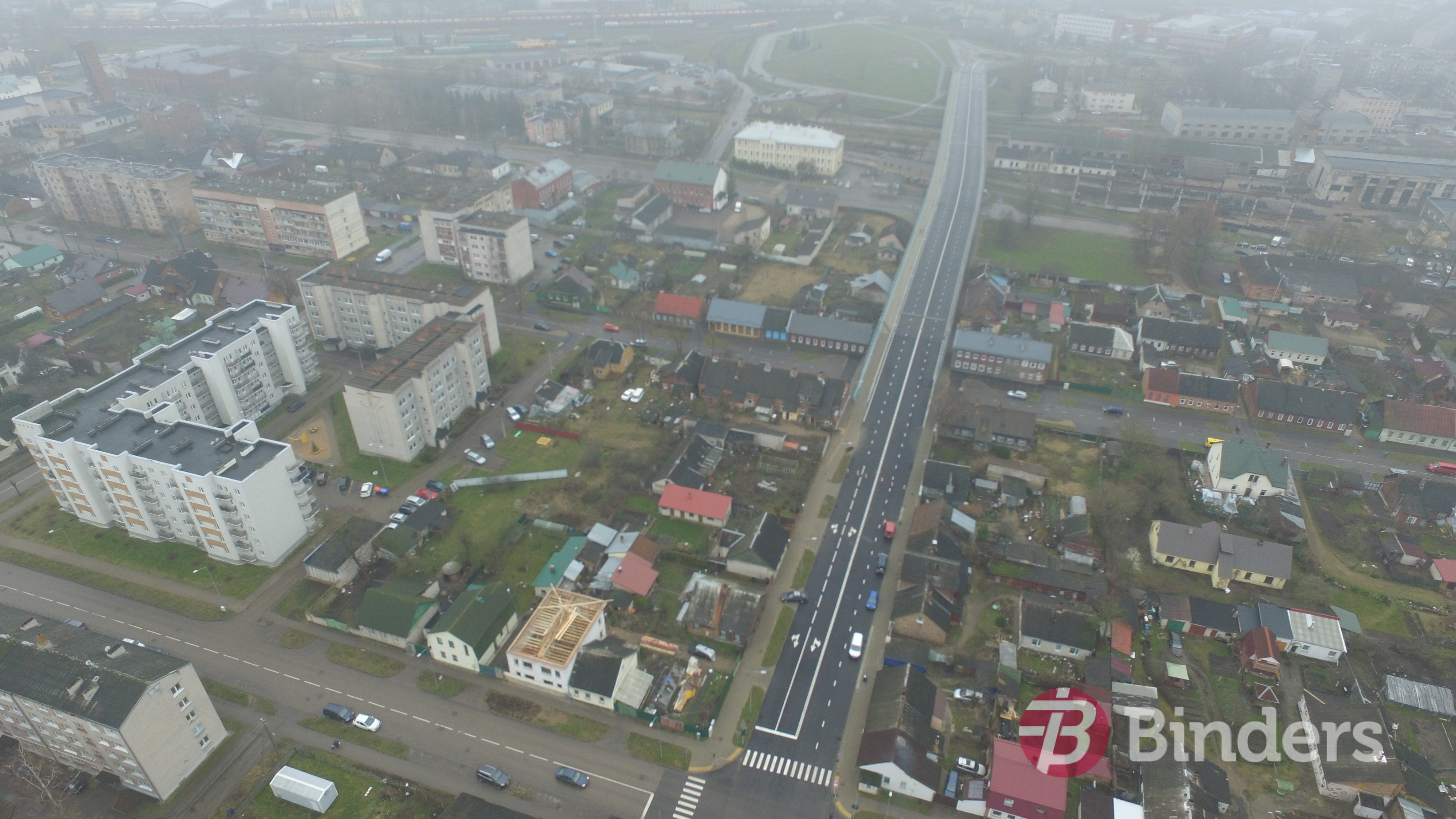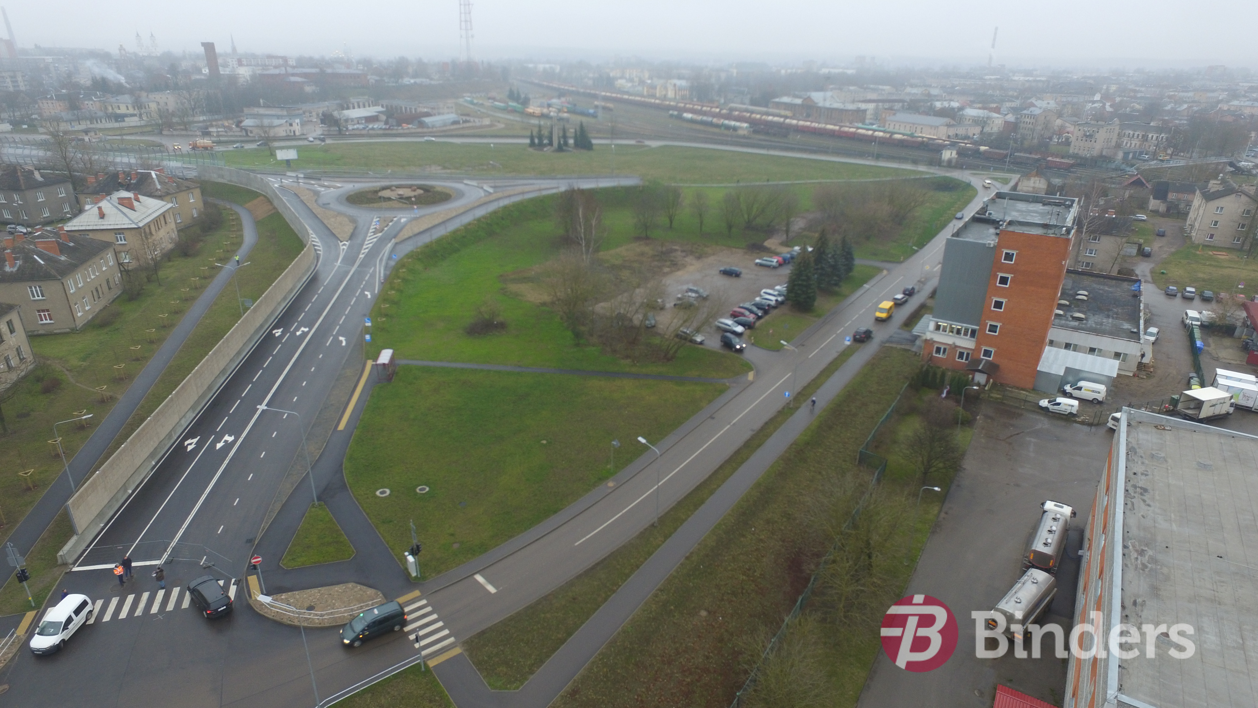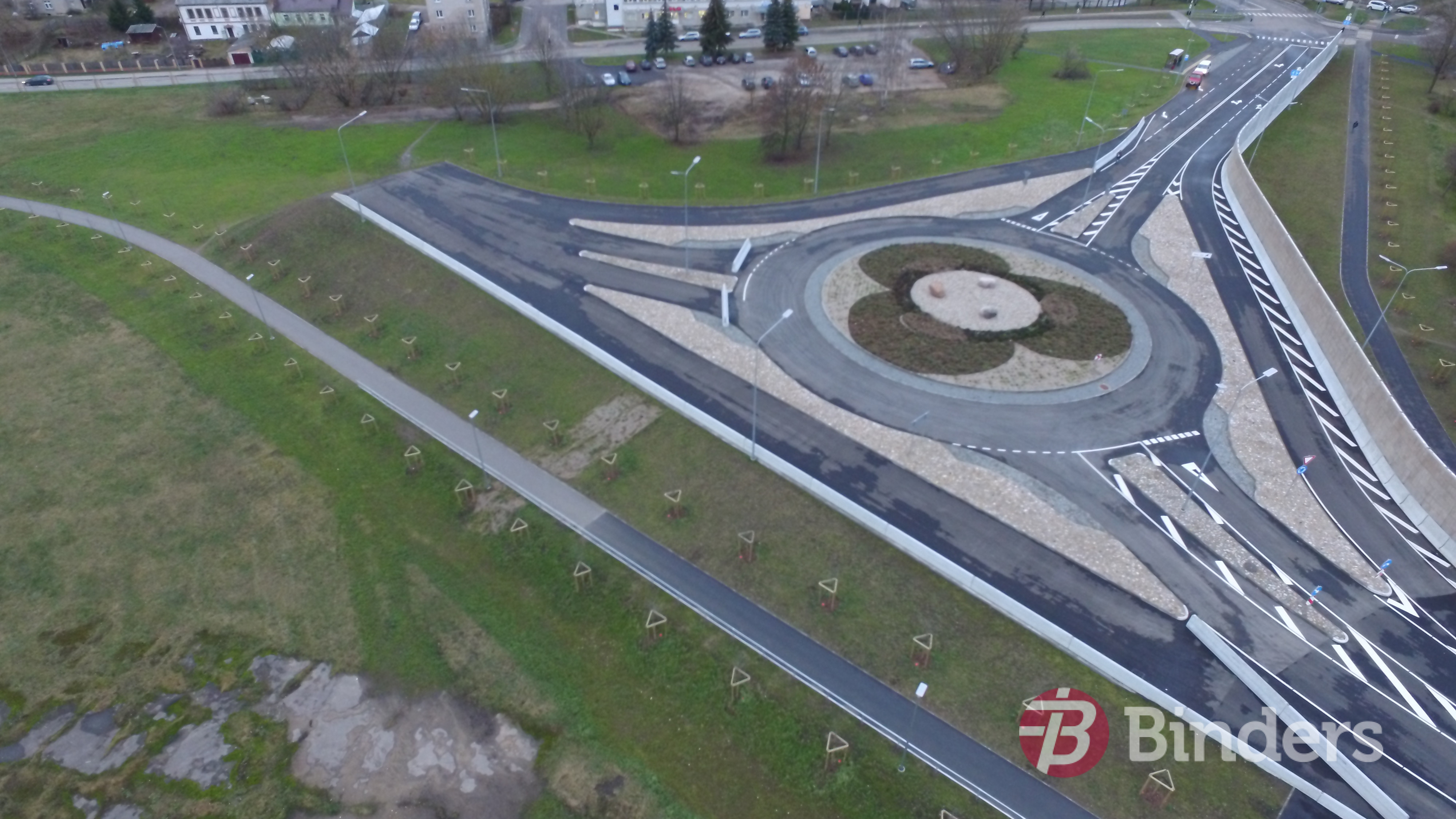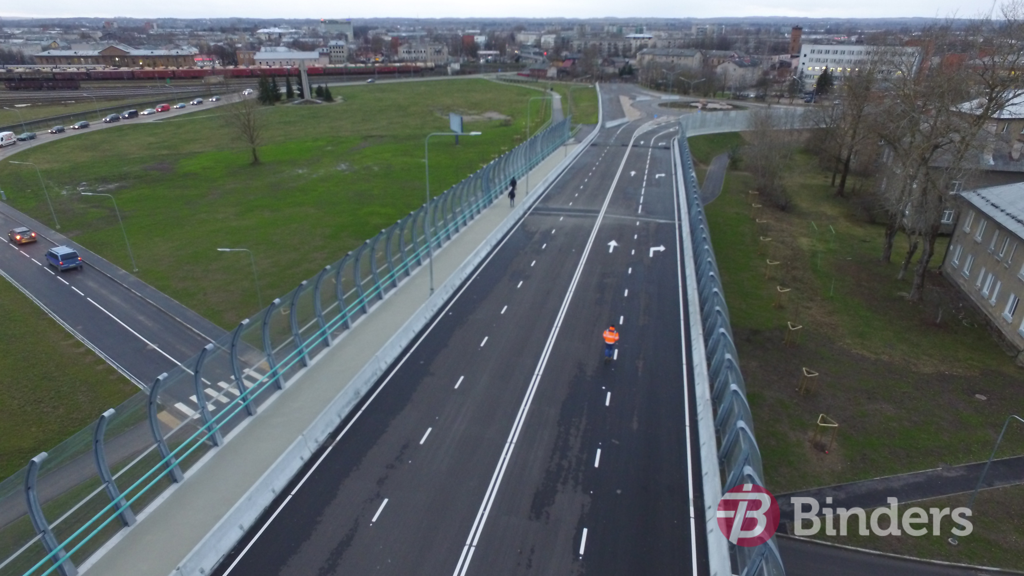 Uzņēmuma “Binders”  būvdarbu apjoms – pārvada jaunbūves piegulošajā teritorijā esošo astoņu  ielu rekonstrukcija, maģistrālo inženierkomunikāciju rekonstrukcija, teritorijas labiekārtošana, asfaltēšana.