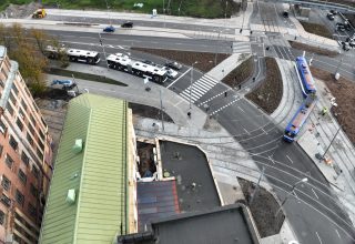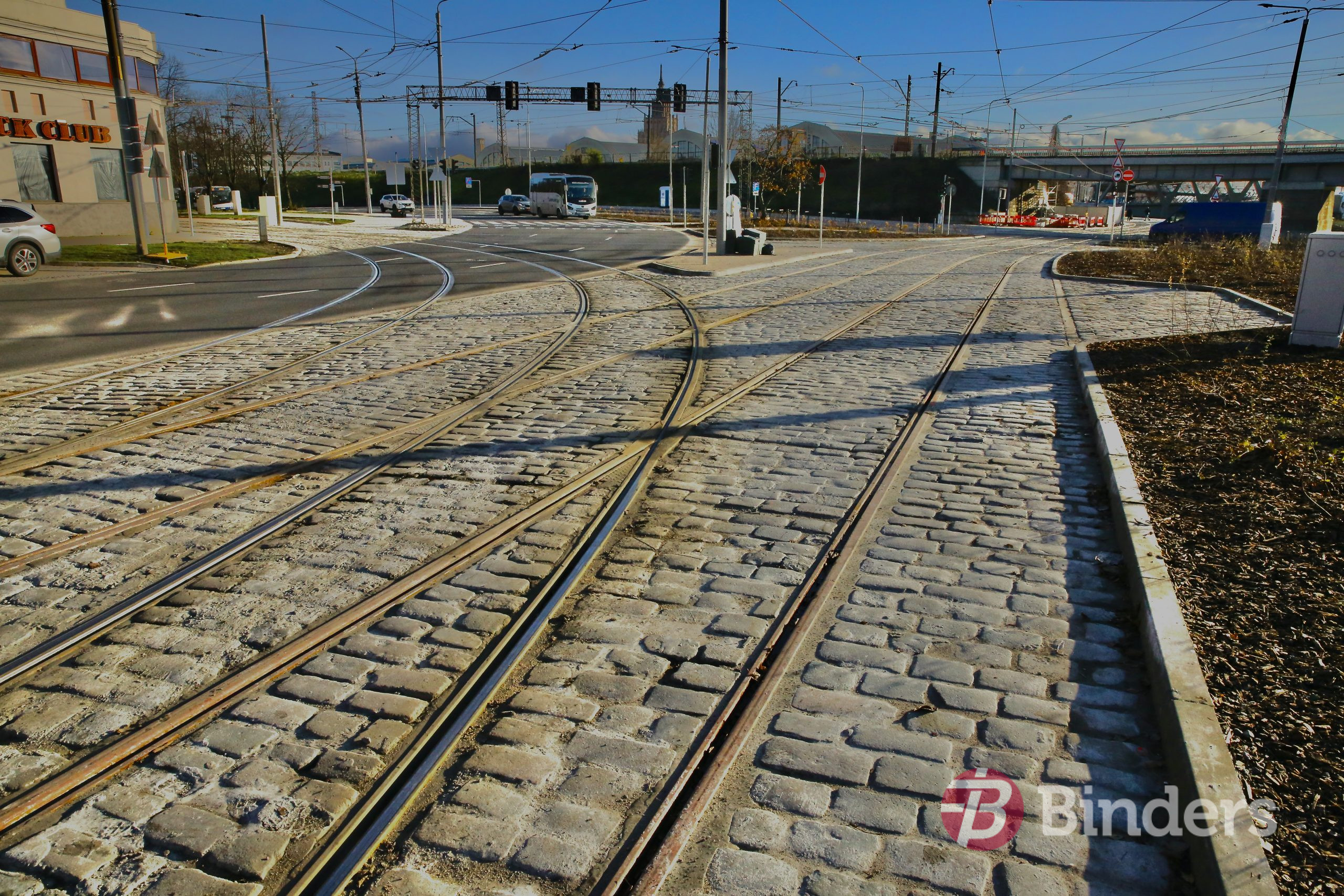 Atbilstoši būvprojekta risinājumiem šajā satiksmes mezglā tika veikta sliežu ceļu pārbūve, tajā skaitā automatizēto pārmiju vadības sistēmas ierīkošana, tramvaja kontakttīkla konstrukciju pielāgošana, lietus ūdens novadīšanas risinājumu ieviešana un intensīvas autotransporta satiksmes slodzei atbilstoša brauktuves seguma izbūve.