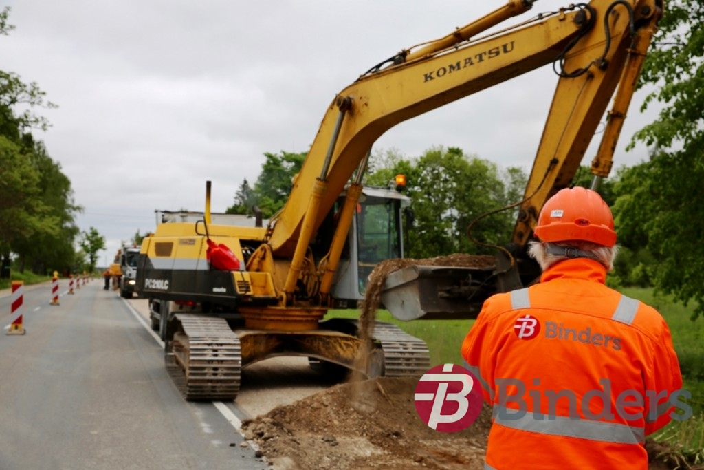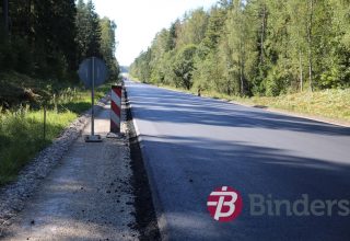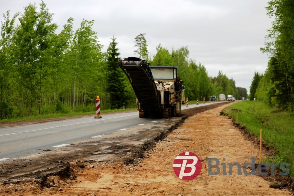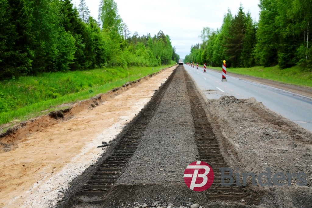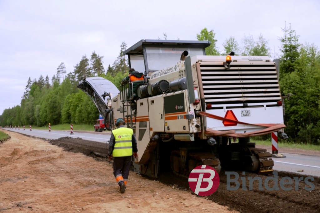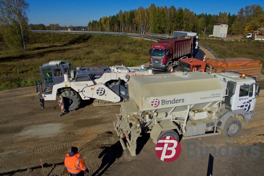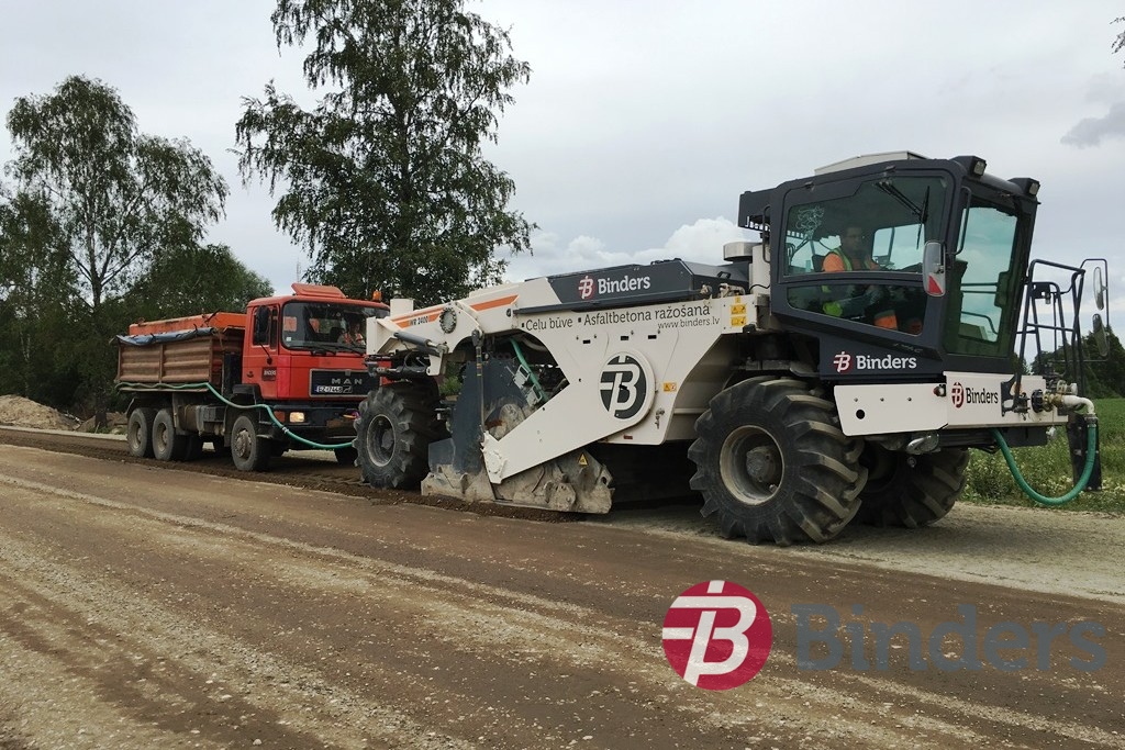 Ceļa pamata pastiprināšana ar reciklēšanu – veco segu uzirdnāja, pievienoja jaunu šķembu maisījumu un cementu, kam pa virsu trijās kārtās ieklāja jauno asfalta segumu.